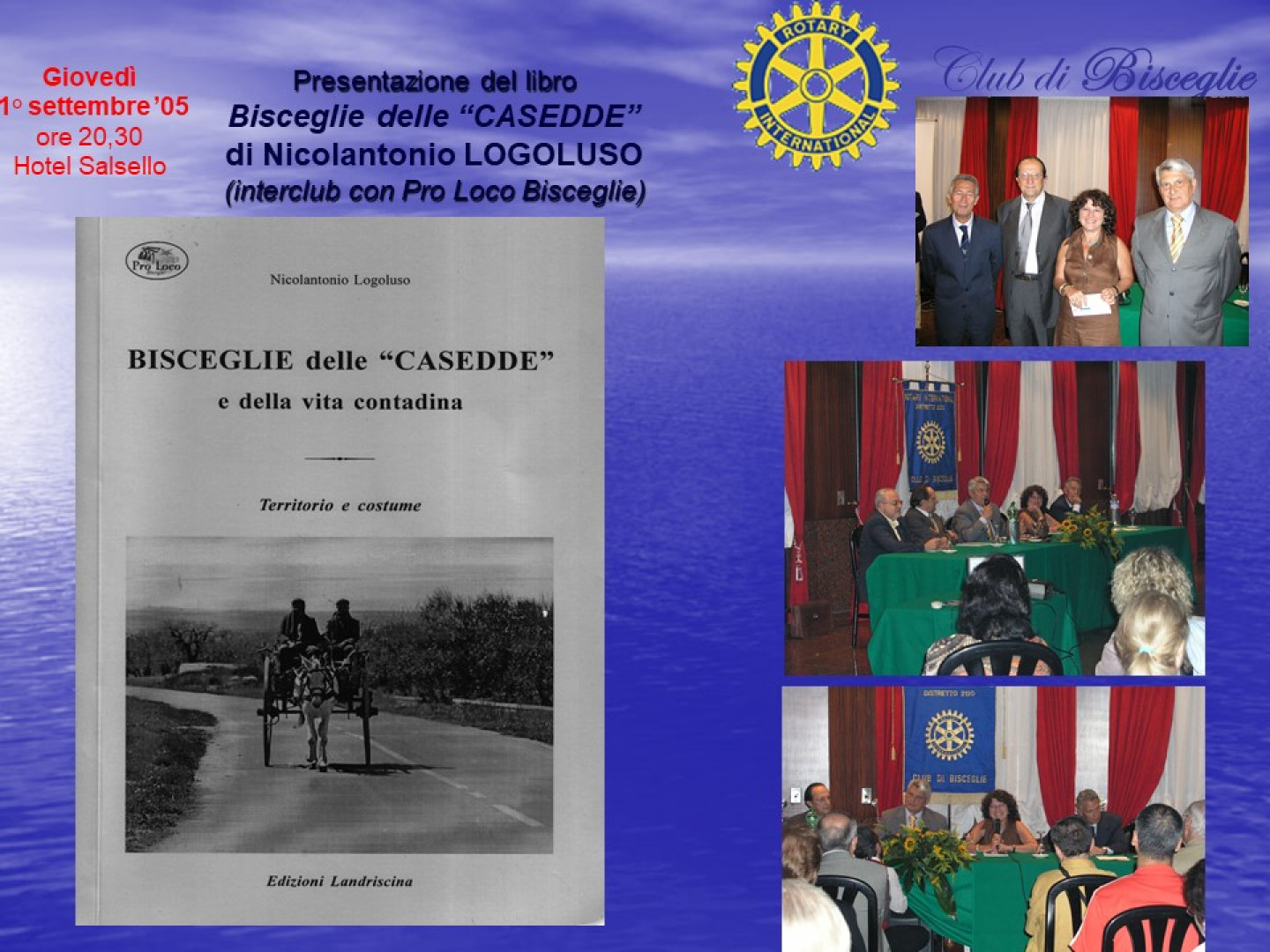 Mercoledì 7 Dicembre2005, alle ore 20,00presso l'Hotel Salsello, idon Marino ALBRIZIO, Sacerdote appassionato di storia locale, parlaal Rotary Club di Bisceglie sul tema: "Dai fal&ogra...