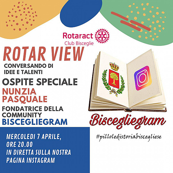 Primo appuntamento del mese di aprile della rubrica “ROTAR-VIEW” ideata ed organizzata dal @rotaractbisceglie , #mercoledì 7 aprile alle ore 20, sempre in diretta sulla nostra pagina Instagram.