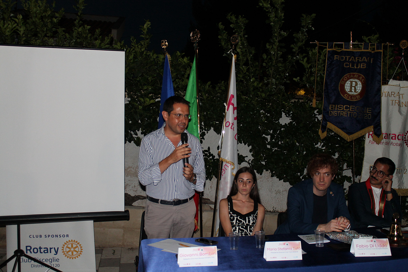 Presenti ed entusiasti, oltre a numerosi rotariani, rotaractiani, interactiani e amici dei club, anche il Past Governor Luca Gallo, Coordinatore disttettuale dell'Azione per i Giovani, il Presidente della Commissione Distrettuale Rotaract Massimo Cassanelli, la presidente della Commissione Distrettuale Interact Lilla Bruno, i Rappresentanti Distrettuali Rotaract e Interact Mario Bianco e Davide Ligrani, il Delegato Distrettuale Rotaract per l'Interact Luigi Bombini, il Delegato di Zona Rotaract Giovanni Bombini, la Segretaria Distrettuale Rotaract Adele Ricchitelli, i presidenti 2023/24 e 2024/25 del Rotary Club Bisceglie Peppino Cortese e Tatiana Dell'Olio e Pietro De Luca Tupputi Schinosa, Assistente del Governatore Lino Pignataro. Presenti anche Lella Di Reda, Presidente ADISCO, Pasquale D'Addato, Presidente della SOMS Rom Intangibile, Pierpaolo Sinigaglia, Presidente Pro Loco, e Angela Maria Quatela, Presidente della Coop. Sociale Uno Tra Noi. Durante la serata è avvenuto anche il passaggio delle consegne del Rotaract Club di Trani da Maria Stefania Tatò a Lorenzo Casafina.