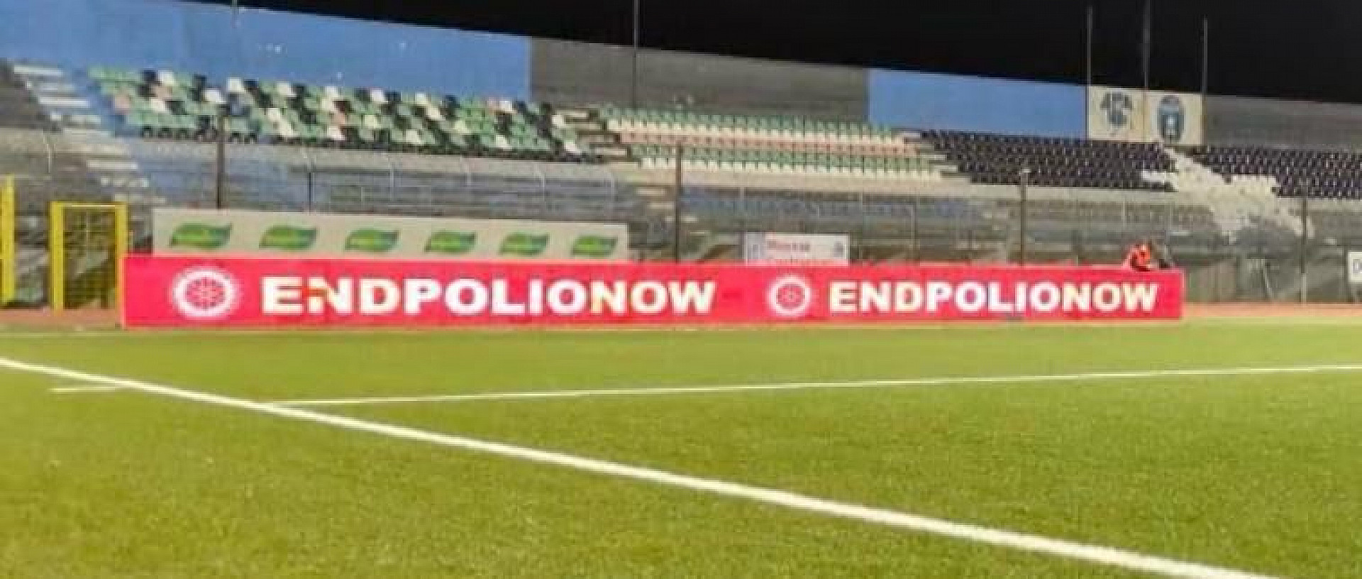 Un ringraziamento alla ADS Unione Calcio Bisceglie, per aver portato in campo i valori rotariani e ancora all’Amministrazione Comunale di Bisceglie, per aver permesso l’esposizione dello stendardo e della bandiera End Polio Now, accanto al logo Rotary, sui simboli della città — Piazza Margherita e Palazzo San Domenico.