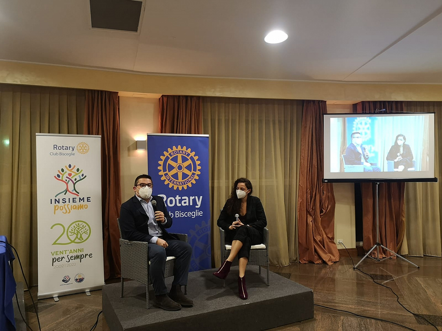 La presenza in collegamento del Governatore del Distretto Rotary 2120, Gianvito Giannelli, e la relazione introduttiva che egli ha tenuto sul valore della professionalità nel Rotary e sulla necessità che quest’ultimo apporti il proprio fondamentale contributo alla crescita della società contemporanea, hanno ulteriormente arricchito la serata, così come anche la presenza del Sindaco di Bisceglie, Angelantonio Angarano, dell’Assessore alla Cultura, Loredana Bianco e dei past governor Luca Gallo e Sergio Sernia.