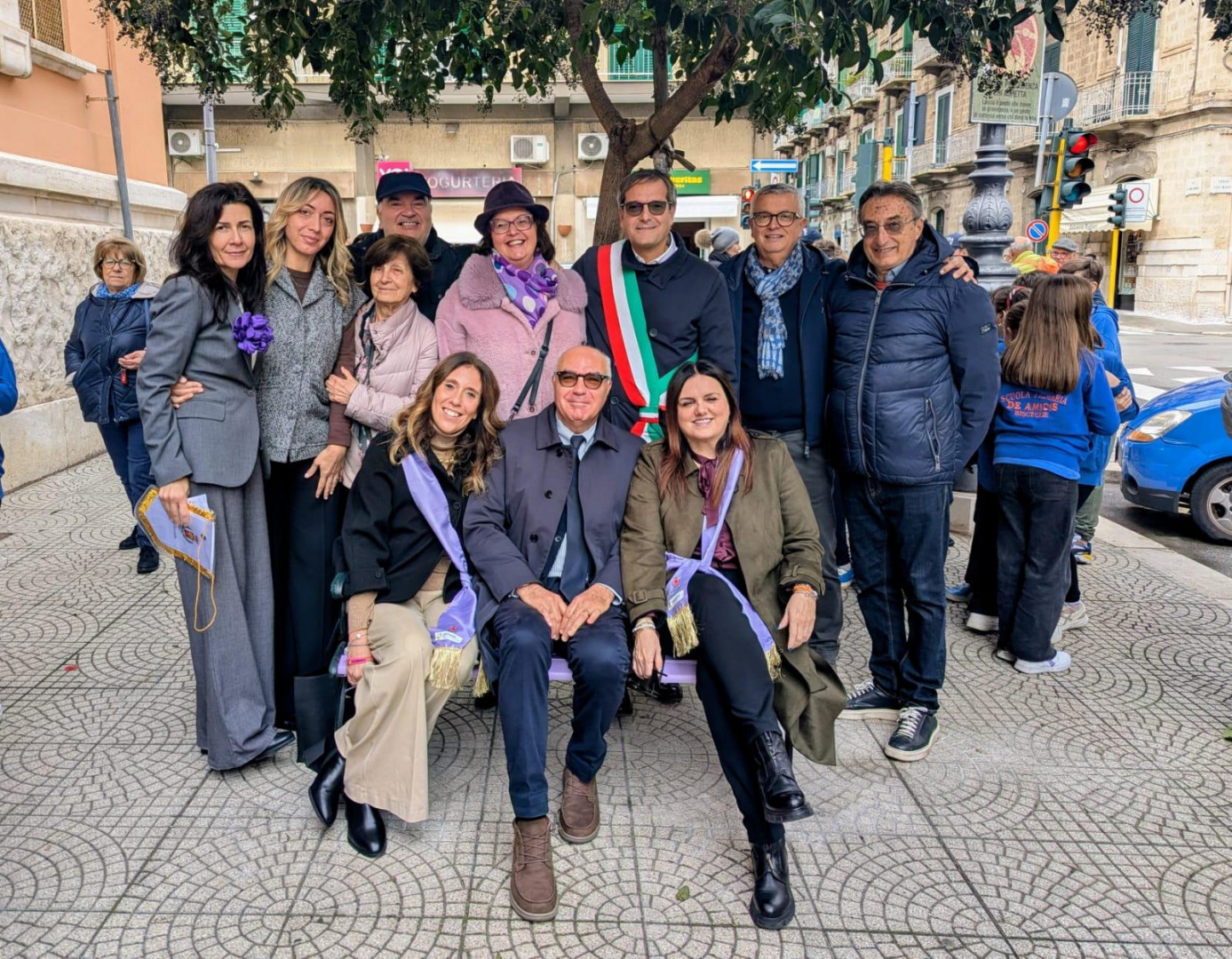 La cerimonia di consegna e inaugurazione si è svolta in un clima di grande serenità e pace, pienamente in linea con il tema della Giornata, già festeggiata a livello nazionale il 13 novembre scorso. I piccoli alunni delle classi V B e V C hanno recitato teneri versi invitanti a gesti di dolcezza e di aiuto, a parole di saluto, a sorrisi di accoglienza e condivisione, accolti con gli applausi dei genitori, degli insegnanti, del Sindaco, dell’Assessore Roberta Rigante, e di vari soci del Rotary Club Bisceglie, sponsor della manifestazione, che hanno partecipato personalmente ai lavori di pitturazione e sistemazione della panchina viola.