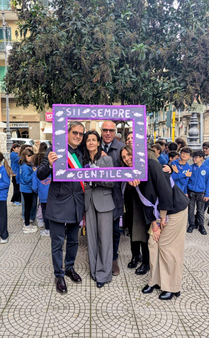 Viola perché? Un alunno ha spiegato che il viola deriva dalla combinazione del rosso, colore della determinazione, con l’azzurro, simbolo di profondità; infatti la gentilezza non deve essere timida e nascosta ma deve manifestarsi con sicurezza e determinazione e provenire dal profondo del cuore con il rispetto e l’amore dovuti al prossimo. Il Sindaco e il Presidente del Rotary Club Bisceglie hanno ripreso questi concetti sottolineando l’importanza del rispetto verso chi ci è vicino, non solo, ma verso tutto ciò che ci circonda: oggetti, piante, ambiente. La panchina, sistemata sotto un albero piantato negli scorsi lavori di riqualificazione dell’ampio marciapiede adiacente lo storico Edificio E. De Amicis, offrirà ombra e protezione a quanti saranno lì ad attendere l’uscita dei bambini o ad assistere ai giochi dei nipotini o a riposarsi solamente.
